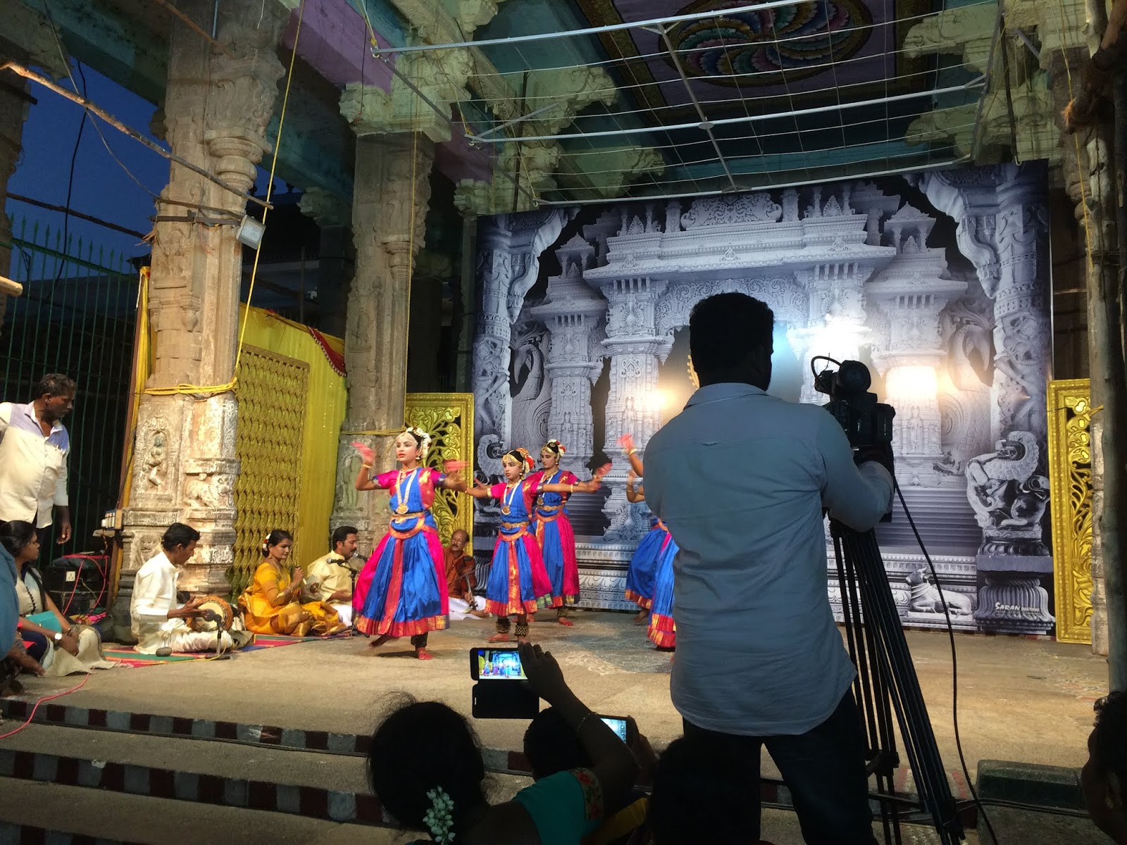 On the steps leading to the decaying, locked 1000-pillared mantapam in the north, a small group of dancers performed to live music as two cameramen recorded the recitals.